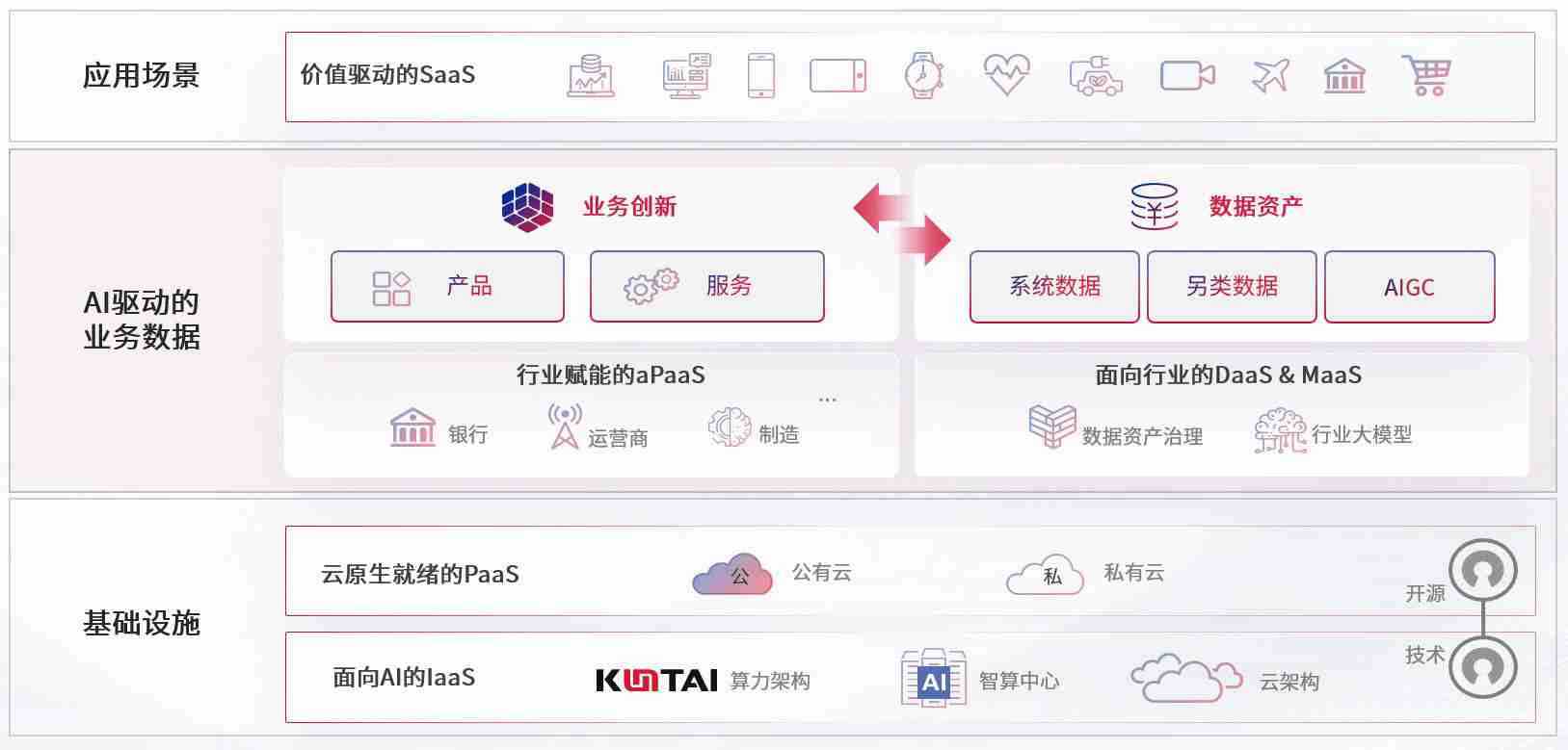 数字时代,,围绕企业数字化转型的关键要素,,918.com数码开创性的提出数云融合战略和技术体系框架,,,着力在云原生、、、数字原生、、AI原生和信创产业上架构产品和服务能力,,为处在不同数字化转型阶段的快消零售、、、、汽车、、、、金融、、、医疗、、政企、、、、教育、、运营商等行业客户提供泛在的敏捷IT能力和融合的数据驱动能力,,构建跨界融合创新的数字业务场景和新业务模式,,助力企业级客户建立面向未来的核心能力和竞争优势,,,全面推动社会的数字化、、、、智能化转型升级。。